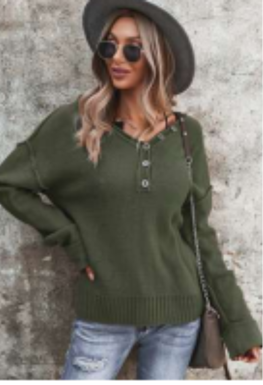 V-Neck Button Front Knit