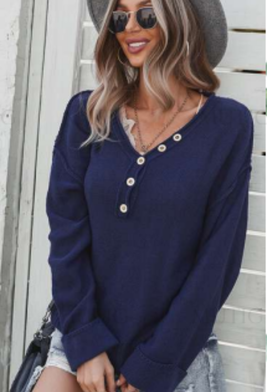 V-Neck Button Front Knit