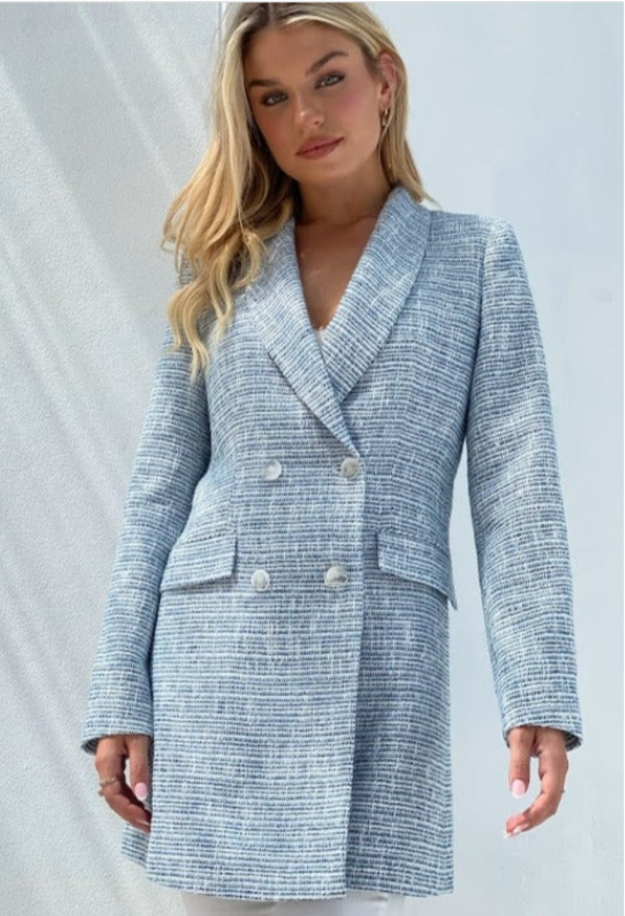 double breasted , fully lined, 2 front pocket sizing is true with a size 10 fitting a size 10